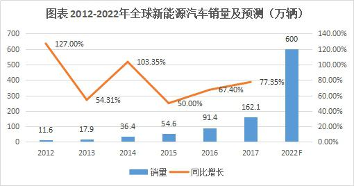 在此背景下,全球新能源汽車銷售量從2011年的5.1萬輛增長至2017年的1621萬輛,6年時(shí)間銷量增長30.8倍。未來隨著支持政策持續(xù)推動(dòng)、技術(shù)進(jìn)步、消費(fèi)者習(xí)慣改變、配套設(shè)施普及等因素影響不斷深入,GGI預(yù)計(jì)2022年全球新能源汽車銷量將達(dá)到600萬輛,相比2017年增長2.7倍。