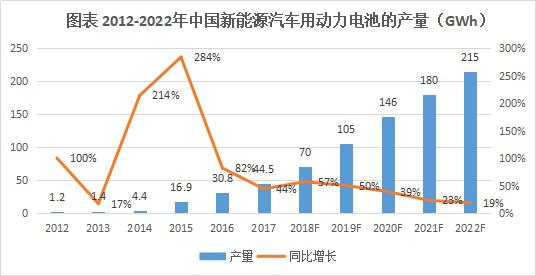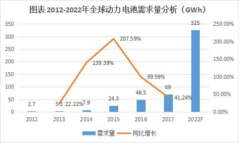 2017年全球應(yīng)用于電動(dòng)汽車動(dòng)力電源規(guī)模為69.0GWh,是消費(fèi)電子、動(dòng)力、儲(chǔ)能三大板塊中增量最大的板塊。GGII預(yù)計(jì)到2022年全球電動(dòng)汽車鋰電池需求量將超過325GWh,相比2017年增長3.7倍。