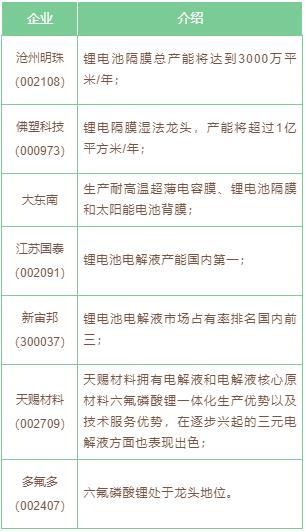 隔膜、電解液上市公司