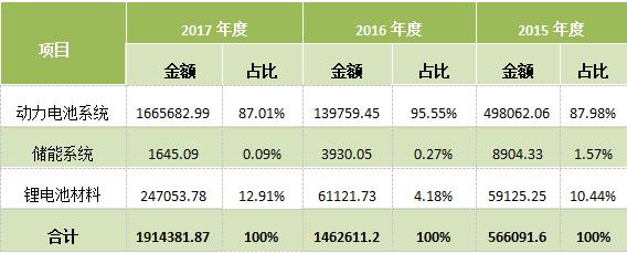 公司主營業(yè)務(wù)收入來自動(dòng)力電池系統(tǒng)、儲(chǔ)能系統(tǒng)和鋰電池材料的銷售,具體情況如下:
