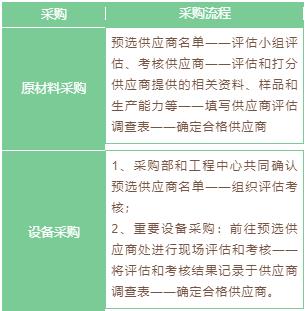 公司采購包括原材料采購和設(shè)備采購,采購流程主要有合格供應(yīng)商選擇、框架合約簽署、供應(yīng)商產(chǎn)品驗(yàn)證和采購價(jià)格談判四個(gè)環(huán)節(jié)。