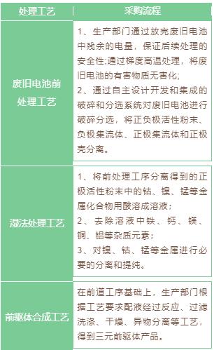 公司通過廣東邦普開展鋰離子電池材料業(yè)務(wù),將廢舊鋰離子電池中的鎳鈷錳鋰等有價(jià)金屬通過加工、提純、合成等工藝,生產(chǎn)出鋰離子電池材料三元前驅(qū)體(鎳鉆錳氫氧化物)等,使鎳鈷錳鋰資源在電池產(chǎn)業(yè)中實(shí)現(xiàn)循環(huán)利用。