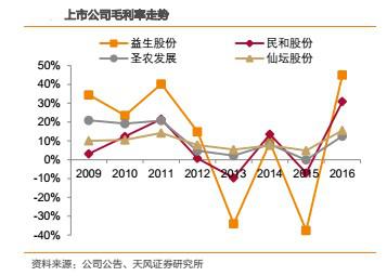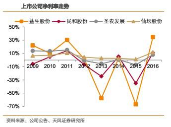 受產(chǎn)品價格彈性影響,越靠近上游,盈利能力的波動越大。財務指標上,毛利率、凈利率的波動,益生股份>民和股份>圣農(nóng)發(fā)展>仙壇股份。