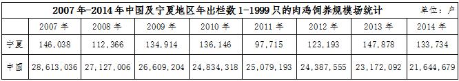 從以上數(shù)據(jù)分析可知,寧夏的肉雞飼養(yǎng)規(guī)模上得不到很好的提升,大多數(shù)都僅僅是靠家庭小規(guī)模飼養(yǎng)為主,大規(guī)模的飼養(yǎng)場在寧夏地區(qū)非常匱乏。不僅對寧夏肉雞行業(yè)的市場影響非?;靵y,也不能達到更高更優(yōu)質的產(chǎn)量,提升寧夏肉雞行業(yè)市場競爭力顯的尤為困難。