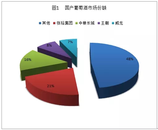 2000年開(kāi)始,伴隨著新一輪消費(fèi)升級(jí)大潮的來(lái)臨,葡萄酒行業(yè)進(jìn)入快速發(fā)展期。近年來(lái),隨著消費(fèi)者對(duì)葡萄酒的認(rèn)知出現(xiàn)變化,居民的消費(fèi)能力也出現(xiàn)上升,葡萄酒市場(chǎng)出現(xiàn)良好的發(fā)展勢(shì)頭,國(guó)內(nèi)一批葡萄酒企業(yè)紛紛打響了自己的品牌。目前,在我國(guó)的500多家葡萄酒企業(yè)中,已經(jīng)形成了以張?jiān)?、王朝、長(zhǎng)城等為龍頭的一線(xiàn)葡萄酒品牌。幾大品牌占據(jù)了國(guó)內(nèi)葡萄酒市場(chǎng)的大部分份額,集中度進(jìn)一步增大。其中,張?jiān)?、長(zhǎng)城、王朝的葡萄酒產(chǎn)量,占全國(guó)葡萄酒總產(chǎn)量的50%左右(圖1)。同時(shí)張?jiān)?、長(zhǎng)城和王朝的銷(xiāo)量占50%的市場(chǎng)份額。利潤(rùn)總額更是占到行業(yè)的67%。王朝、張?jiān)!㈤L(zhǎng)城三家國(guó)產(chǎn)品牌通過(guò)超市等多渠道的擴(kuò)張,已在國(guó)內(nèi)消費(fèi)者心目中占據(jù)重要的位置。