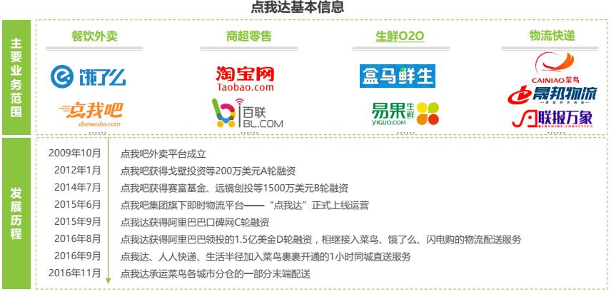 即時(shí)物流平臺(tái)點(diǎn)我達(dá)脫胎于外賣平臺(tái)點(diǎn)我吧,憑借出色的運(yùn)營(yíng)和調(diào)度能力快速發(fā)展。2016年7月,獲得阿里領(lǐng)投的1.5億美金D輪融資,并接入菜鳥網(wǎng)絡(luò)城市配送體系,成為阿里物流布局戰(zhàn)略重點(diǎn)。相較于其他即時(shí)物流平臺(tái),點(diǎn)我達(dá)擁有淘系電商龐大的資源背景作為支撐,訂單來源除O2O平臺(tái)之外還包括物流、電商等,在競(jìng)爭(zhēng)中占據(jù)絕對(duì)優(yōu)勢(shì)。