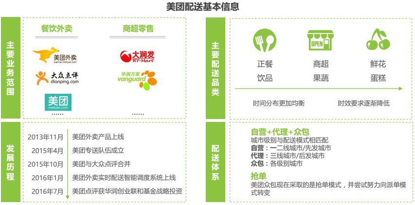 2017年初,美團(tuán)外賣配送日訂單量已經(jīng)超過900萬單,美團(tuán)配送團(tuán)隊(duì)完成的訂單比例逐步提升,配送能力日漸增強(qiáng)?;诿缊F(tuán)外賣入駐商家類型的多元化,美團(tuán)配送的品類也在不斷擴(kuò)展。為快速開拓三四線城市的市場(chǎng),美團(tuán)外賣采用“自建+加盟代理+眾包”的運(yùn)力組織形式,適應(yīng)不同市場(chǎng)的需要。