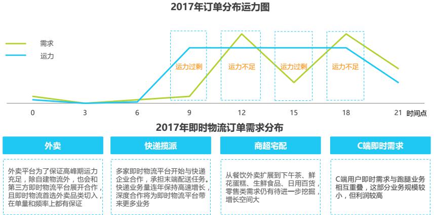 1、即時(shí)物流受上游產(chǎn)業(yè)影響大,單量和品類決定企業(yè)前景
