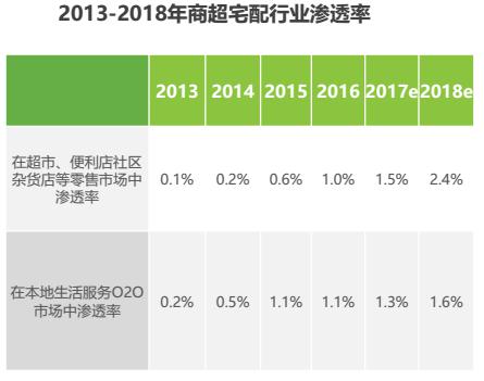 隨著商超宅配的興起和發(fā)展,即時(shí)物流在外賣配送之外找到了新的市場(chǎng)增長(zhǎng)點(diǎn)。目前商超宅配O2O行業(yè)滲透率較低,不足2%,但保持50%以上的年增長(zhǎng)率,成為即時(shí)物流新的增長(zhǎng)點(diǎn)。另外,“新零售”概念的提出,將通過數(shù)據(jù)和商業(yè)邏輯的深度結(jié)合,實(shí)現(xiàn)消費(fèi)模式的深刻變革,其中物流的價(jià)值和重要性日益凸顯。