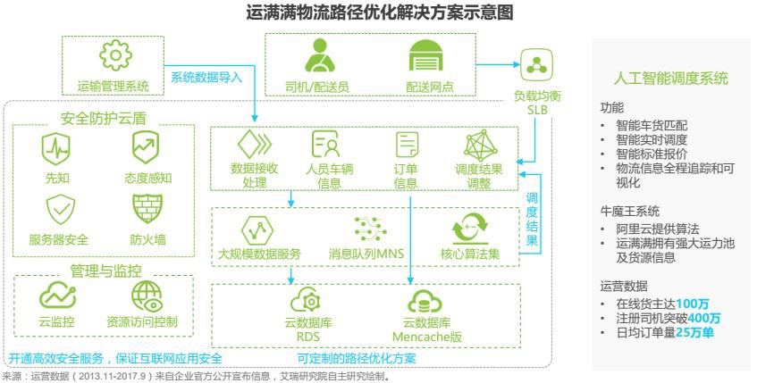 2016年底,運(yùn)滿滿攜手阿里云,發(fā)布了“牛魔王”人工智能調(diào)度系統(tǒng),結(jié)合運(yùn)滿滿的數(shù)據(jù)和用戶場(chǎng)景、以及阿里云的算法團(tuán)隊(duì),共同推動(dòng)干線配貨人工調(diào)度朝著智能化方向推進(jìn)?!芭D酢毕到y(tǒng)是基于云計(jì)算、大數(shù)據(jù)、移動(dòng)互聯(lián)網(wǎng)和人工智能技術(shù)的公路物流領(lǐng)域高新技術(shù)綜合應(yīng)用的典型代表,可以實(shí)現(xiàn)服務(wù)車主與貨主的智能車貨匹配、智能實(shí)時(shí)調(diào)度、智能標(biāo)準(zhǔn)報(bào)價(jià)及對(duì)物流信息全程追蹤和可視化,顯著提升公路干線物流貨源、車輛、路線、價(jià)格匹配速度、精準(zhǔn)度和運(yùn)輸組織效率。