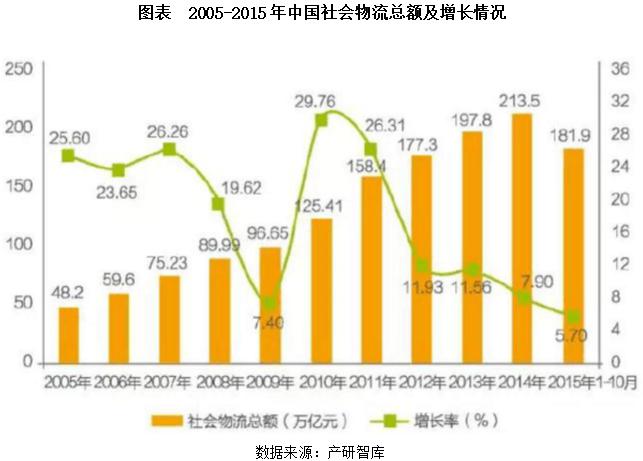 2015年1-10月,全國(guó)社會(huì)物流總額為181.9萬億元,按可比價(jià)格計(jì)算,同比增長(zhǎng)5.7%,增速較1-9月回落0.1個(gè)百分點(diǎn),增速比去年同期回落2.6個(gè)百分點(diǎn)。