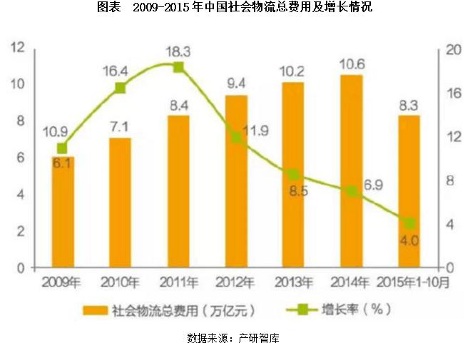 3、生產(chǎn)成本增長(zhǎng)倒逼物流快速發(fā)展