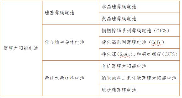 (三)薄膜太陽(yáng)能電池分類