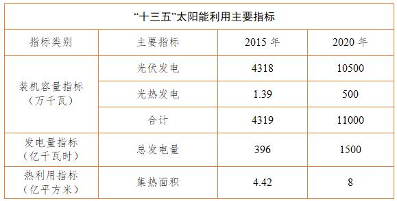 光伏發(fā)電成本持續(xù)降低。到2020年,光伏發(fā)電電價(jià)水平在2015年基礎(chǔ)上下降50%以上,在用電側(cè)實(shí)現(xiàn)平價(jià)上網(wǎng)目標(biāo);太陽(yáng)能熱發(fā)電成本低于0.8元/千瓦時(shí);太陽(yáng)能供暖、工業(yè)供熱具有市場(chǎng)競(jìng)爭(zhēng)力。