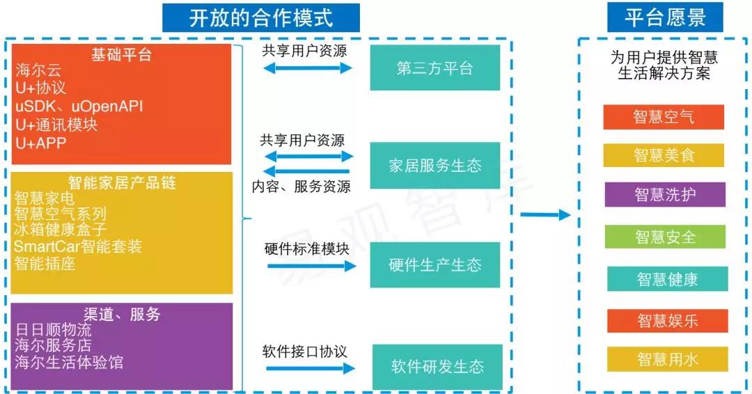 海爾U+智慧生活平臺(tái)是海爾集團(tuán)旗下全開(kāi)放、全兼容、全交互的智慧生活平臺(tái)。海爾作為最早布局智能家居市場(chǎng)的企業(yè),自2014年發(fā)布U+智慧生活戰(zhàn)略以來(lái),海爾U+從智能家電產(chǎn)品出發(fā)逐步構(gòu)建起全場(chǎng)景智慧生活解決方案。通過(guò)與美國(guó)GE Appliances、新西蘭Fisher & Paykel、卡薩帝、統(tǒng)帥、日本AQUA等品牌整合,其智能產(chǎn)品體系覆蓋基本全面。