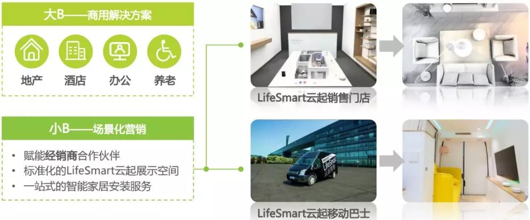 LifeSmart云起的全屋智能解決方案主要面向高端用戶(hù)群體,通過(guò)B端的線下渠道銷(xiāo)售給最終用戶(hù)。一方面,LifeSmart云起與房地產(chǎn)、酒店、養(yǎng)老等行業(yè)客戶(hù)達(dá)成戰(zhàn)略合作,采用項(xiàng)目制的方式落地商用解決方案。同碧桂園聯(lián)手打造的馬來(lái)西亞森林城市智能豪宅、為阿里巴巴定制的智能會(huì)議系統(tǒng)等都是其中的標(biāo)桿案例。另一方面,LifeSmart云起基于眾多中小經(jīng)銷(xiāo)商客戶(hù),構(gòu)建起穩(wěn)固的銷(xiāo)售渠道。通過(guò)向經(jīng)銷(xiāo)商輸出標(biāo)準(zhǔn)化的展示空間和服務(wù)體系,可以由智能機(jī)器人完成LifeSmart云起樣板間內(nèi)的產(chǎn)品介紹和演示。依靠可視化的智能家居體驗(yàn)與一站式的安裝服務(wù),LifeSmart云起不僅可以觸達(dá)到廣泛的終端消費(fèi)者,更能夠有效實(shí)現(xiàn)用戶(hù)流量的轉(zhuǎn)化。
