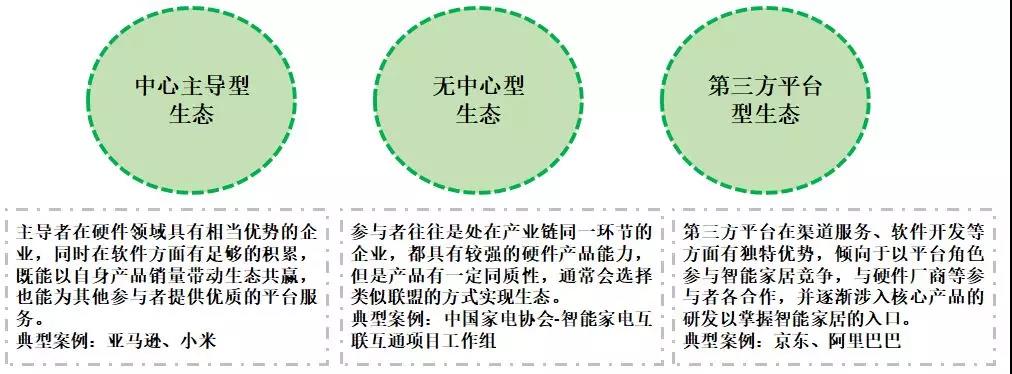 智能家居行業(yè)涉及面非常廣泛,各垂直細(xì)分領(lǐng)域之間壁壘高,完整的智能家居生態(tài)不是某個(gè)或某幾個(gè)獨(dú)立的智能單品所能代表的。行業(yè)本身的特性意味著一家獨(dú)大的情形難以出現(xiàn),勢(shì)必要跨界融合,將不同環(huán)節(jié)和細(xì)分領(lǐng)域的參與者囊括進(jìn)來(lái)。盡管越來(lái)越多的企業(yè)開(kāi)始秉承著開(kāi)放的心態(tài)達(dá)成合作,但對(duì)于生態(tài)的具體形態(tài)、每個(gè)參與者的位置和利益分配的方式尚無(wú)定論。通常,在行業(yè)內(nèi)有一定領(lǐng)先優(yōu)勢(shì)的頭部企業(yè),大多希望憑借既有優(yōu)勢(shì)主導(dǎo)生態(tài)的形成和發(fā)展,而中小企業(yè)和創(chuàng)業(yè)公司則更傾向于選擇加入已有的生態(tài),利用生態(tài)內(nèi)的資源發(fā)揮自我價(jià)值。