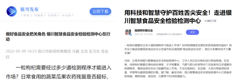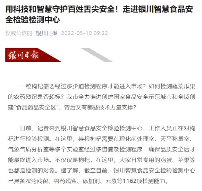 銀川日報、銀川電視臺宣傳報道銀川智慧食品安全檢驗檢測中心助力銀川市“兩個創(chuàng)建”
